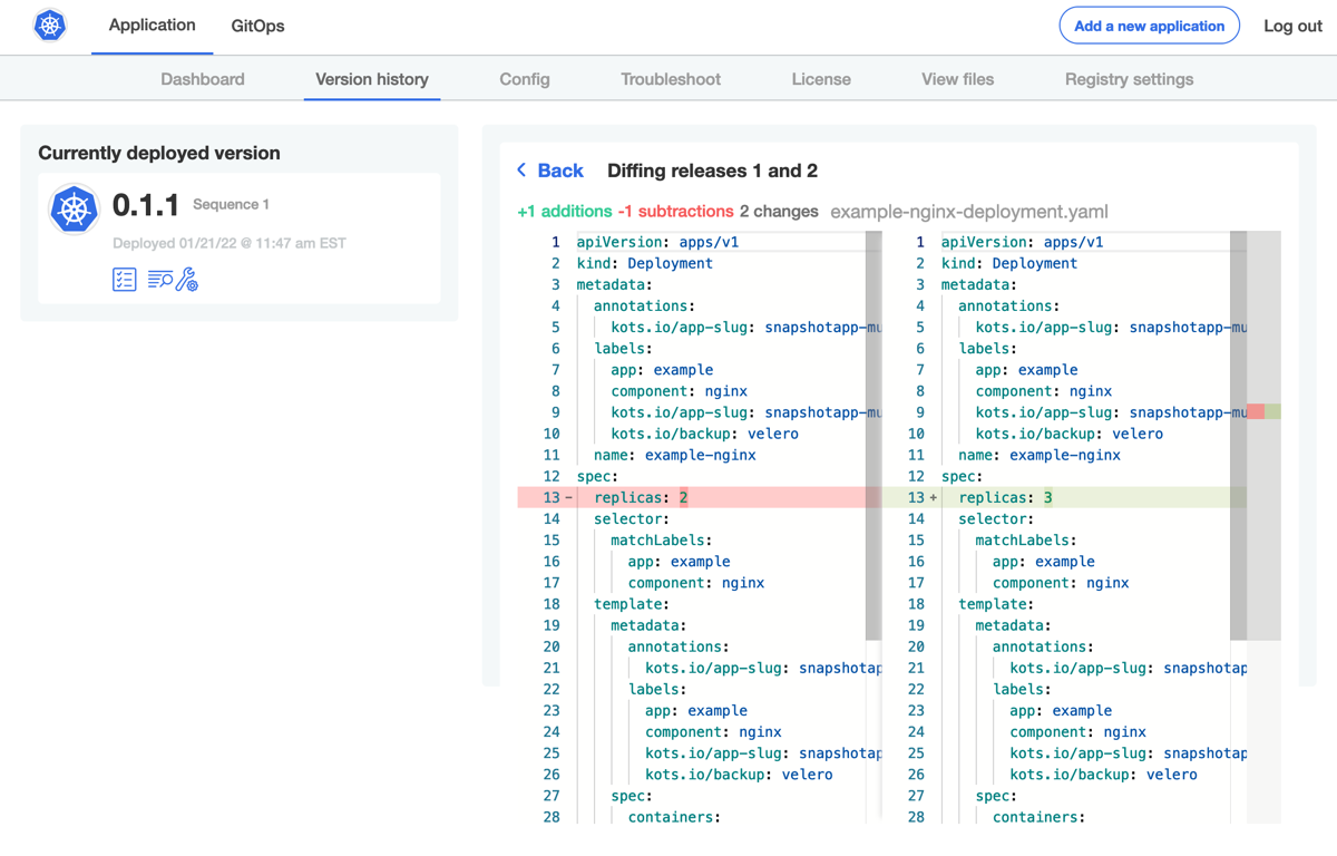 6. (Optional) When there are multiple versions of an application, you can compare the changes between them by clicking Diff releases in the right corner.
